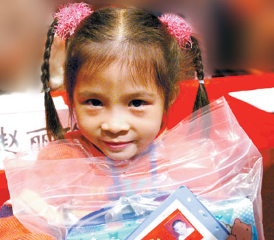 地貧兒的“親人們”從四面八方趕來(lái)。認(rèn)親家庭的“爸爸”“媽媽”們拉著地貧小朋友們的手問(wèn)長(zhǎng)問(wèn)短,感動(dòng)的淚水充盈著他們的眼睛,愛(ài)如涓涓細(xì)流無(wú)聲流淌在每個(gè)人的心中。香蜜湖獅子會(huì)會(huì)長(zhǎng)王麗芳、市民陳小姐、朱太太、顧小姐四個(gè)“媽媽”圍著“認(rèn)捐”的地貧兒袁嘉怡噓寒問(wèn)暖?!皨寢尅眰冞€帶來(lái)了5個(gè)如花似玉的“姐姐”,8歲的“小姐姐”王靖君看著“妹妹”袁嘉怡非常憐愛(ài),她說(shuō),以后我有好玩好吃的,都會(huì)想著她。我的零用錢也要分給她。富士康集團(tuán)的員工們和認(rèn)親的地貧小朋友共同植下了愛(ài)心樹(shù),而沃爾瑪公司給地貧孩子們帶來(lái)了書包、文具等愛(ài)心禮物。