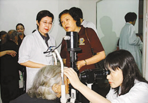 匯宗藥業(yè)總經(jīng)理鄭小愛在江西參加“光明行”活動,為當?shù)刎毨О變?nèi)障患者免費實施復(fù)明手術(shù)