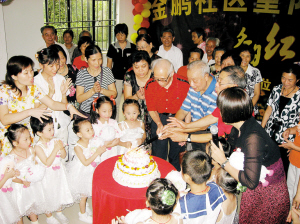 羅湖區(qū)福利中心目前生活著260位孤寡老人,其中有4位百歲老人,他們在這里受到了很好的照顧,生活十分幸福。區(qū)領(lǐng)導(dǎo)給老人們送上鮮花、慰問金和慰問品,并叮囑工作人員一定要照顧好,要把老人當作自己的父母來對待。80歲的彭輝霞老人情不自禁地唱起了《沒有共產(chǎn)黨,就沒有新中國》,贏得了在場人員熱烈掌聲。