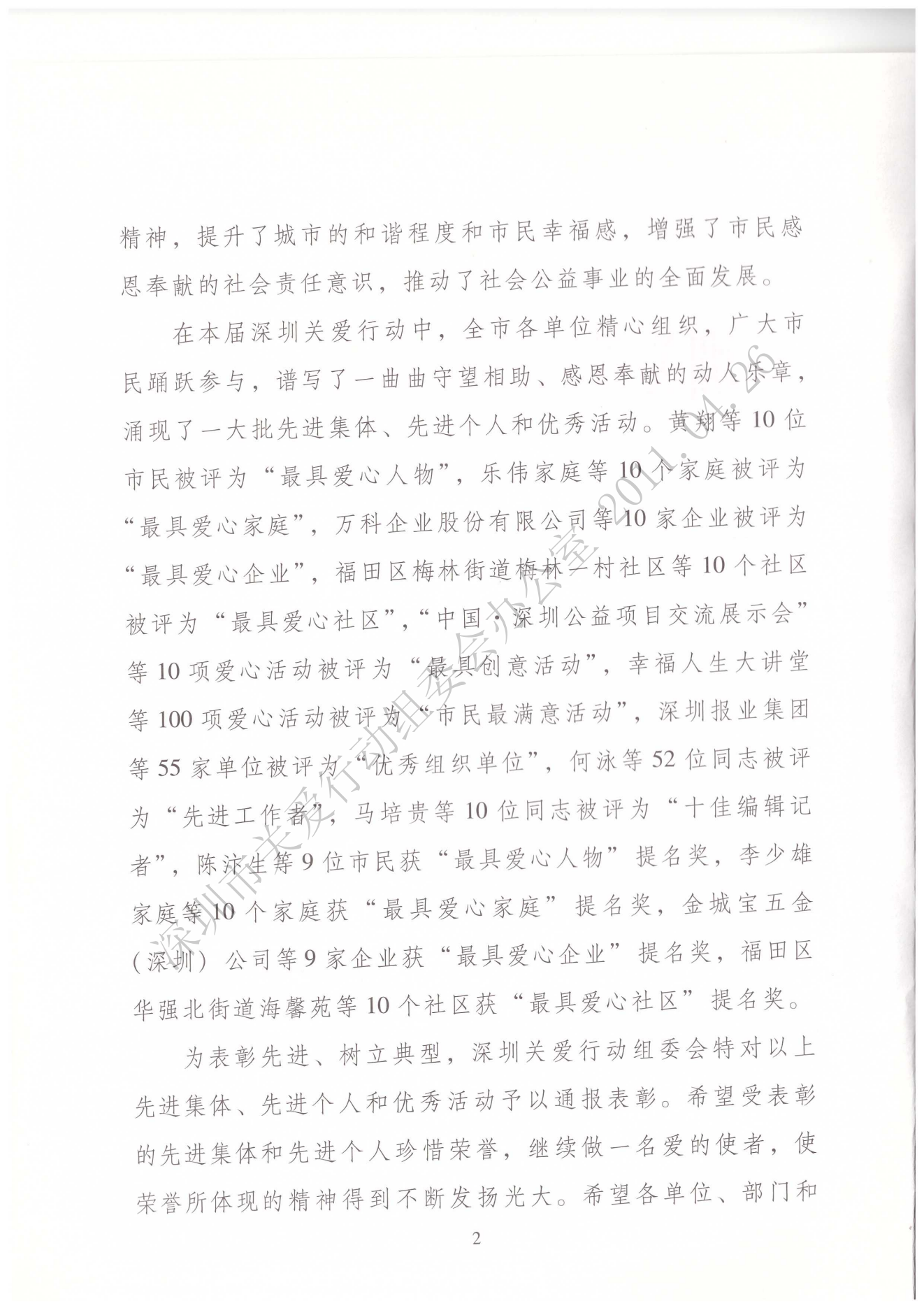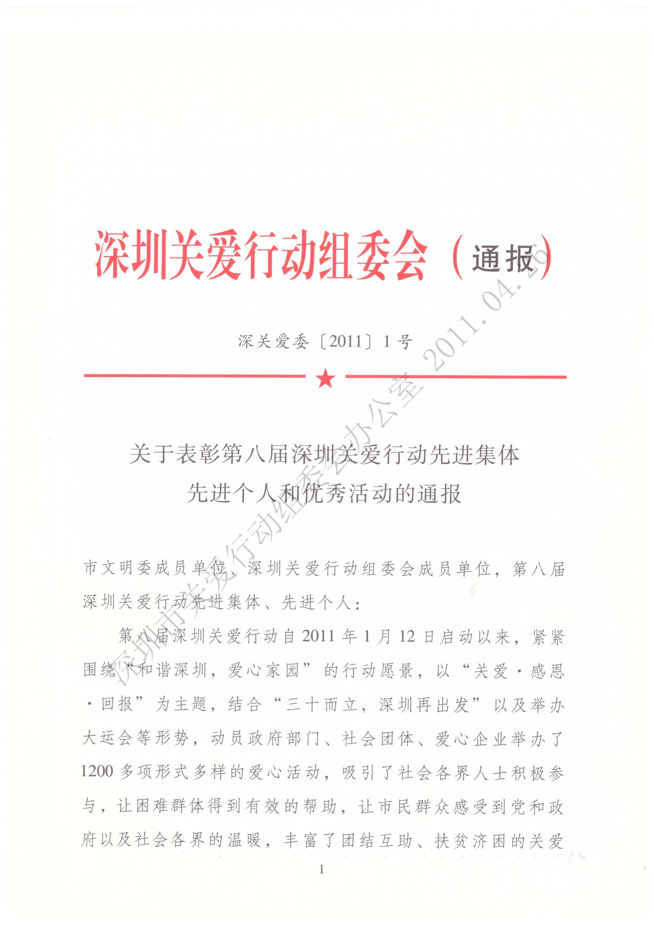 關(guān)于表彰第八屆深圳關(guān)愛行動先進(jìn)集體、先進(jìn)個人和優(yōu)秀活動的通報