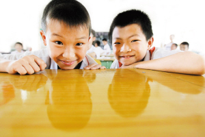在小書桌發(fā)放現(xiàn)場,記者看到拿到新書桌的孩子們都異常興奮,光滑的桌面上倒映著他們一張張開心的小臉。洋坑小學五年級一班劉玉婷同學一直夢想著有一張小書桌,昨天她終于如愿以償,微笑著不斷地用手帕細心地擦著心愛的桌面。