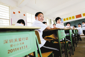 昨天是“六一”兒童節(jié),江西省贛州市于都縣羅江鄉(xiāng)洋坑小學的孩子們收到了一份來自深圳的特殊禮物——由深圳安華投資發(fā)展有限公司捐贈的1000張“愛心小書桌”,在多年使用破舊不堪的書桌后,孩子們終于擁有了嶄新的小書桌。