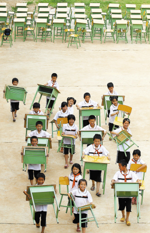 “我們這里很多學校的課桌都是不斷地修補,擁有一套小書桌是學生、家長和老師的迫切希望?!苯饔诙伎h文明辦主任謝林州介紹說。