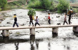 翻山越嶺,孩子們將小書(shū)桌搬回家。