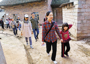 孫影帶著深圳市關(guān)愛(ài)辦、深圳晚報(bào)、中航物業(yè)公司工作人員及市民代表一行在拉魯村走訪。