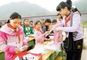 ????位于山坳之中的岔河小學(xué)當(dāng)天格外熱鬧,100多名同學(xué)早早就守候在校門(mén)口,翹首等待遠(yuǎn)道而來(lái)的客人。學(xué)校90多名貧困學(xué)生喜滋滋地領(lǐng)到了愛(ài)心小書(shū)桌,全校200多名學(xué)生都領(lǐng)到了中航物業(yè)管理公司特地為孩子們準(zhǔn)備的書(shū)包、彩筆、文具盒等禮物。
