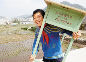 ????扛著心愛(ài)的小書(shū)桌,摩挲著珍貴的彩筆……這所偏遠(yuǎn)的山村小學(xué),因?yàn)樾?shū)桌和深圳愛(ài)心市民的到來(lái),到處洋溢著孩子們的歡聲笑語(yǔ)。