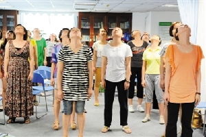 昨天上午,來(lái)自香港大學(xué)行為健康中心的老師在與學(xué)員分享放松身心的技巧。
