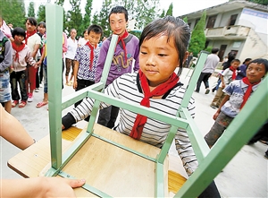 貴州畢節(jié)三元鄉(xiāng)中心學(xué)校小朋友領(lǐng)到了“愛心書桌”。