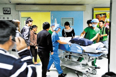 下午6時(shí)25分,在3名醫(yī)護(hù)人員的護(hù)送下,鄧杰終于從手術(shù)室推了出來。鄧杰的爸爸媽媽、爺爺奶奶一直將他送到了一樓的重癥監(jiān)護(hù)室。