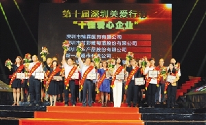 昨日,“深愛(ài)十年”深圳關(guān)愛(ài)行動(dòng)十周年紀(jì)念表彰活動(dòng)在深圳廣電大廈舉行。圖為十佳愛(ài)心企業(yè)受表彰。 深圳商報(bào)記者 陳發(fā)清 攝