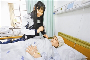 ????在此后的兩年多里,一放學(xué),陳芳燕就會(huì)給媽媽洗腳、按摩,照顧媽媽睡覺。在病床邊陪媽媽聊天。上高中住校了,陳芳燕每天都給媽媽打電話,鼓勵(lì)媽媽戰(zhàn)勝病魔。