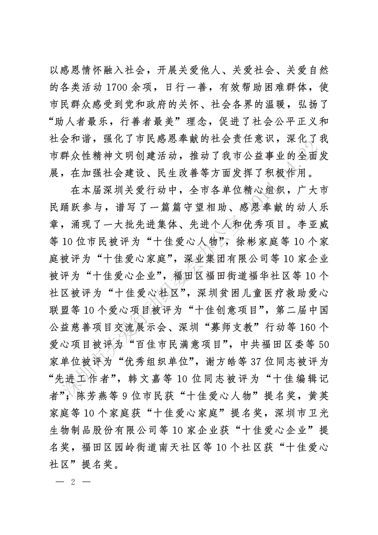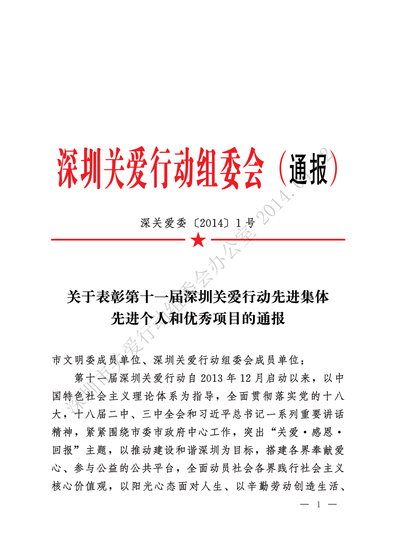 關(guān)于表彰第十一屆深圳關(guān)愛行動先進集體、先進個人和優(yōu)秀項目的通報
