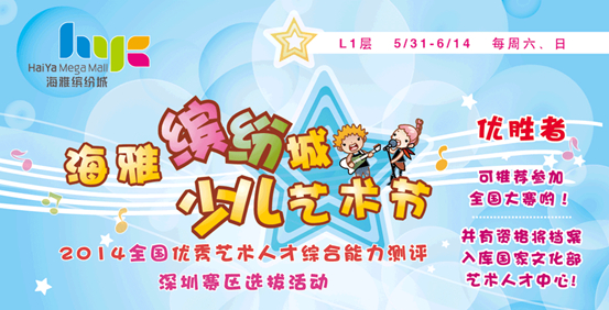 ????由深圳市關(guān)愛行動公益基金會、深圳市海雅繽紛城商業(yè)有限公司、深圳市翠鳴文化藝術(shù)有限公司聯(lián)合主辦的2014全國優(yōu)秀藝術(shù)人才書畫優(yōu)秀作品義賣展覽,將于2014年5月31日—6月8日在深圳市寶安區(qū)海雅繽紛城一樓中庭舉行。