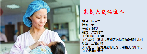 陳素香是深圳市羅湖區(qū)婦幼保健院新生兒科的一名主管護(hù)師。自1998年從廣東黃埔衛(wèi)校畢業(yè)以來(lái),已在護(hù)理崗位堅(jiān)守17年。俗話(huà)說(shuō),“三分治療,七分護(hù)理”,這對(duì)于實(shí)施24小時(shí)家屬無(wú)陪制度的新生兒科來(lái)說(shuō),是最形象的寫(xiě)照。