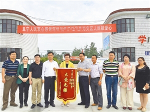 ?阜寧縣相關(guān)人員為深圳愛心組織獻(xiàn)上錦旗表示感謝。