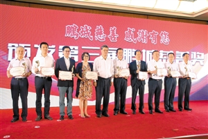 田夫?yàn)轵v訊公司、深圳市榮超房地產(chǎn)開發(fā)有限公司、深圳海王集團(tuán)股份有限公司等獲得鵬城慈善捐贈企業(yè)金獎的代表頒獎。羅莉?yàn)閰杺?、李羅力、丁時照等榮獲鵬城慈善推動者的代表頒獎。劉潤華為黃南美、蘇麗平、石欣等榮獲鵬城慈善獎感動人物的代表頒獎。