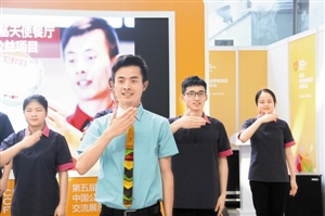 4年前,深圳羅湖書城一樓誕生了中國(guó)首家肯德基天使餐廳,這里28名全職員工中有20名為特障人士,絕大部分為聽障人士,他們被顧客親切地稱為“天使”。9月24日上午,聽障“天使”們也來到了慈展會(huì)現(xiàn)場(chǎng),給大家?guī)砹艘粓?chǎng)精彩的手語沙龍活動(dòng),并且用手語“唱響”了《我相信》,他們的自信與陽(yáng)光給活動(dòng)參與者們留下了深刻印象。