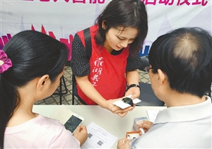 蓮塘街道工作人員為轄區(qū)老人免費(fèi)配發(fā)智能手表。