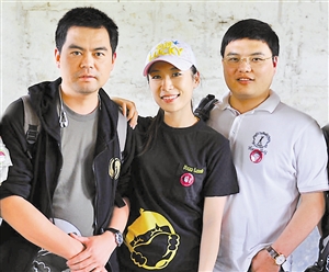 蘇哲芳(正中)與“免費午餐”發(fā)起人鄧飛、秘書長胡益華合影。受訪者供圖