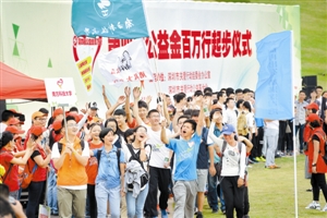 每年的“公益金百萬行”的啟動(dòng)儀式都是一場令人感動(dòng)的愛心聚會(huì),成千上萬市民匯聚到深圳灣公園。在每年的步行現(xiàn)場,市民們貼上“步行證”,扶老攜幼,齊頭并進(jìn),從拄著拐杖的老者,到嬰兒車?yán)锏暮⑼?,從企業(yè)高管,到普通工人,在“公益金百萬行”的旗幟下,每個(gè)人都同樣是參與者:隊(duì)伍里有走路一瘸一拐的殘障人士,因?yàn)槭艿缴鐣?huì)的關(guān)心,希望能夠做出報(bào)答;有年近花甲的老校友,在徒步中找回了少年時(shí)期遠(yuǎn)足的集體回憶;有步履蹣跚的八旬老人,帶著兒孫們以海天為背景留下一張全家?!粋€(gè)個(gè)充滿熱情的笑容,在每個(gè)人的臉上傳遞,在美麗的畫面中定格。