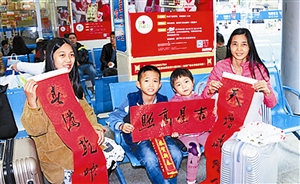 ▲寶安書(shū)法家協(xié)會(huì)聯(lián)合寶安群藝館在寶安汽車(chē)站為來(lái)深建設(shè)者們送上了一副副紅彤彤的春聯(lián)和美好的祝福。