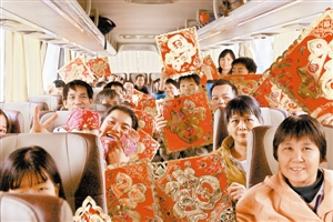 發(fā)車儀式上,深圳市關(guān)愛行動(dòng)公益基金會(huì)、深圳晚報(bào)社、深圳萬(wàn)豐醫(yī)院和深圳書城·寶安城等單位領(lǐng)導(dǎo)為來(lái)深建設(shè)者送去春節(jié)的祝福并派發(fā)新春年貨。簡(jiǎn)短的發(fā)車儀式后,返鄉(xiāng)者在愛心義工的引導(dǎo)下有序登上了回家的大巴。