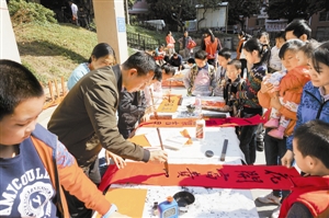 南山圍仔社區(qū)社工開(kāi)展迎新年送春聯(lián)活動(dòng)。 深圳特區(qū)報(bào)記者 羅莉瓊 通訊員 農(nóng)之海 攝