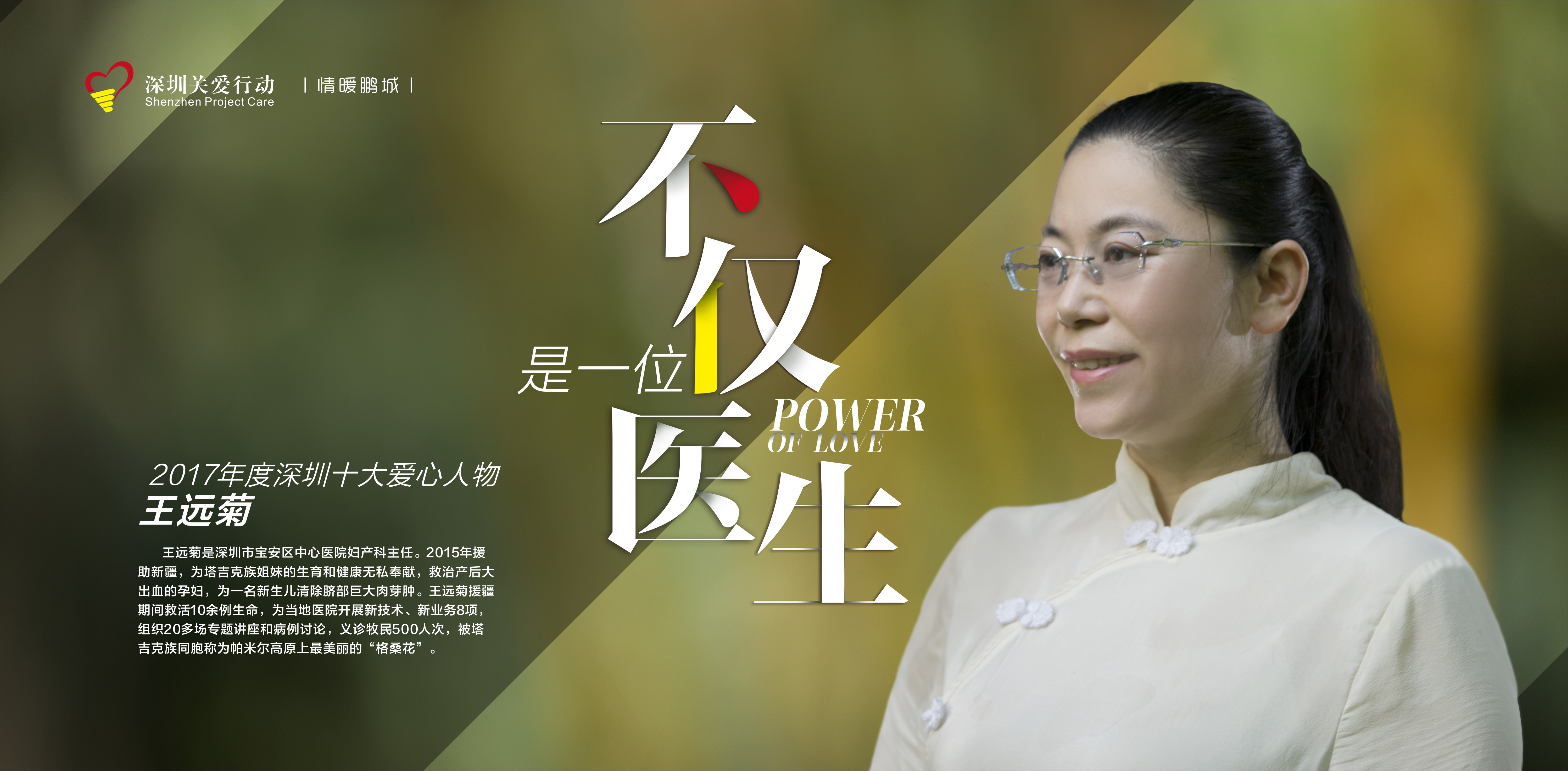 女,深圳市寶安區(qū)中心醫(yī)院婦產科主任。一位深圳的女兒,以大醫(yī)精誠、止于至善的情懷,為塔吉克族姐妹的生育和健康無私奉獻,救死扶傷,被塔吉克族同胞稱為帕米爾高原上最美麗的“格?;ā?。2015年援助新疆,在海拔4500米的塔縣,克服高寒缺氧的惡劣條件,參加急救,死亡線上救活10余例生命,創(chuàng)造了帕米爾高原生命的奇跡。為當地醫(yī)院開展新技術、新業(yè)務8項,其中嬰兒重度陰唇粘連分離術及巨大蜂窩組織炎潰瘍的非植皮清創(chuàng)術開創(chuàng)了塔縣首例。王遠菊成功救治“熊貓血”孕婦產后大出血,還為一名新生兒清除臍部巨大肉芽腫,小孩被命名為“小深圳”……她的愛心事跡塔吉克族家喻戶曉。援疆期間,王遠菊組織20多場專題講座和病例討論,利用業(yè)余時間下鄉(xiāng)給牧民義診,義診牧民500人次,達到最遠的邊境線,被塔吉克牧民稱為“馬背上的醫(yī)療隊”。