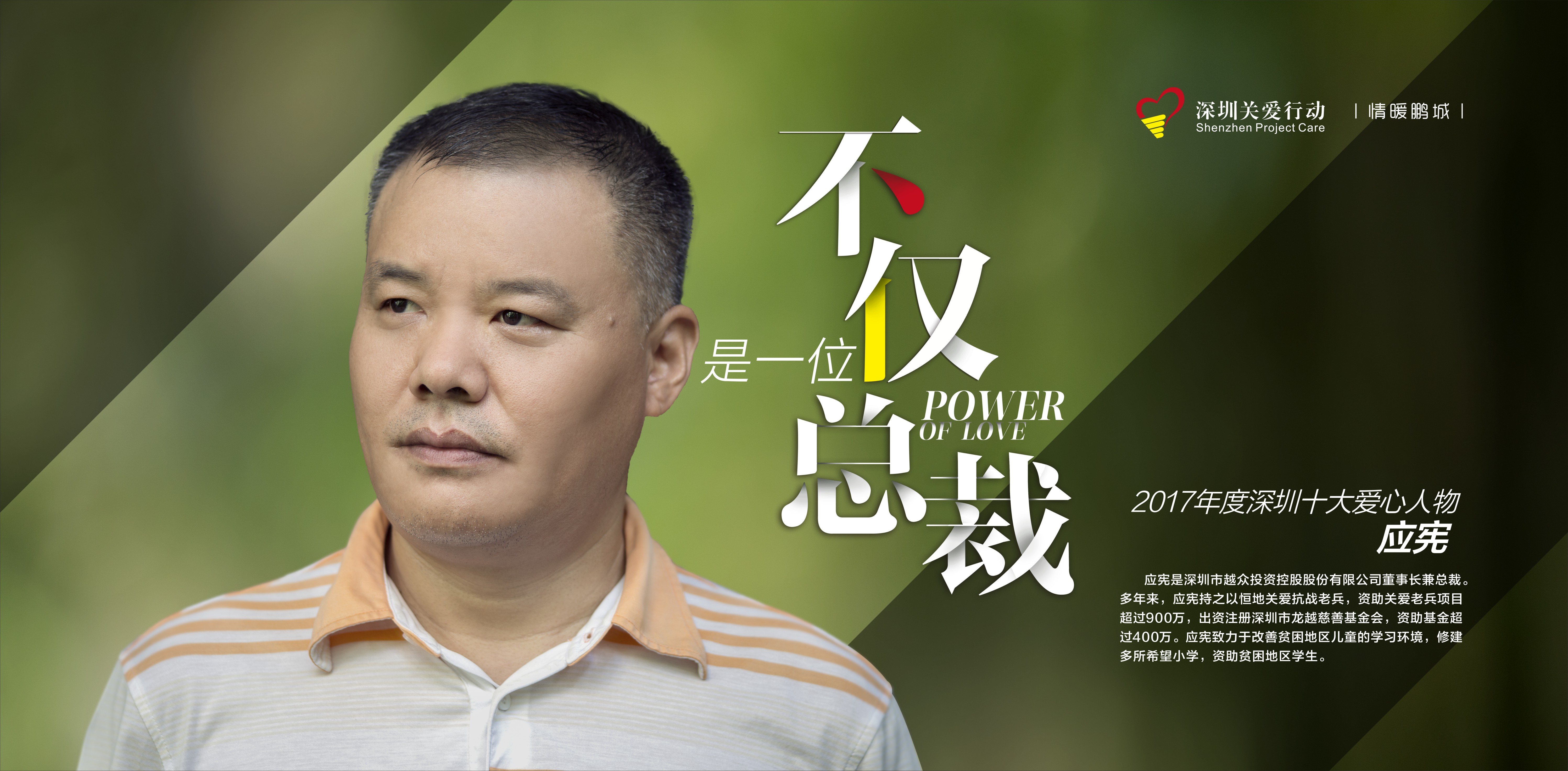 男,深圳市越眾投資控股股份有限公司董事長(zhǎng)兼總裁。自2009年至今,他堅(jiān)定不移地關(guān)愛(ài)抗戰(zhàn)老兵,資助關(guān)愛(ài)老兵項(xiàng)目超過(guò)900萬(wàn);出資注冊(cè)深圳市龍?jiān)酱壬苹饡?huì),所開(kāi)展的老兵回家、遺骸歸國(guó)活動(dòng)引起社會(huì)巨大反響;他還幫扶關(guān)愛(ài)抗戰(zhàn)老兵公益組織注冊(cè)與運(yùn)營(yíng),資助關(guān)愛(ài)老兵基金超過(guò)400萬(wàn),極大限度地推動(dòng)關(guān)愛(ài)抗戰(zhàn)老兵公益事業(yè)發(fā)展。此外,他還關(guān)注歷史,組建歷史小組收集散落在海外的中國(guó)近代史影像資料,彌補(bǔ)了中國(guó)近代史影像資料上的空白,并籌辦“越眾歷史影像館”,邀約歷史、學(xué)術(shù)專(zhuān)家進(jìn)行課題研討,每年有計(jì)劃地對(duì)社會(huì)免費(fèi)開(kāi)放影像資料,舉辦課題講座。他積極推廣抗戰(zhàn)文化,在全國(guó)各地多次舉辦《國(guó)家記憶》影像展并出資拍攝《尋找少?!返榷嗖?jī)?yōu)秀紀(jì)錄片。多年來(lái),他還致力于改善貧困地區(qū)兒童的學(xué)習(xí)環(huán)境,修建多所希望小學(xué),資助貧困地區(qū)學(xué)生等。