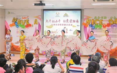 在全國(guó)助殘日來(lái)臨之際,深圳市天使家園聯(lián)合社會(huì)愛(ài)心團(tuán)體、愛(ài)心企業(yè)及愛(ài)心人士舉辦“大手拉小手 讓愛(ài)零距離”大型公益特普融合活動(dòng),活動(dòng)在第三屆福田“社會(huì)組織服務(wù)周”期間舉辦,是一次社會(huì)力量大融合活動(dòng)。圖為龍之韻老年人藝術(shù)協(xié)會(huì)帶來(lái)的精彩表演。