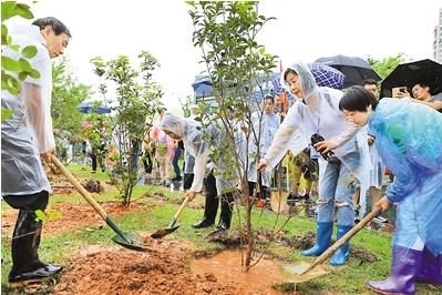 昨天,“關(guān)注植物,關(guān)注未來(lái)”——迎接第19屆國(guó)際植物學(xué)大會(huì)公益植樹(shù)活動(dòng)在生態(tài)優(yōu)美的華僑城濕地舉行。 深圳商報(bào)記者 廖萬(wàn)育 文燦 攝