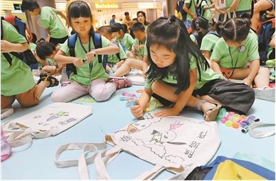 昨日,由寶安區(qū)沙井街道黨工委、辦事處主辦的“蠔鄉(xiāng)暖童心,因愛相守護(hù)”留守兒童關(guān)愛月在沙井新沙天虹購物中心啟動(dòng)。來自湖南、湖北、江西等省的300多位外來留守兒童“小候鳥”參加活動(dòng)。圖為孩子們正在彩繪環(huán)保袋。
