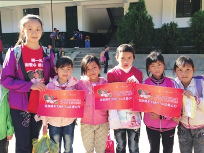 2013年夏天,珮雯再次隨著“捐一元”深入貧困山區(qū),結實了淳樸的普健仙小朋友,從此以后,她們成為無話不說的好朋友,雖然相隔千里,卻經(jīng)常聯(lián)系,互相寄送小禮物。和普健仙多年的友誼,讓珮雯體會到幫助別人的快樂。當時,珮雯想了一個妙招:她給山里的孩子每人發(fā)一張小紙條,讓他們寫下自己的心愿:一個籃球、一個洋娃娃、一條漂亮的裙子......然后,珮雯把這些心愿卡帶回深圳,讓更多的人來共同幫助山區(qū)的孩子們。