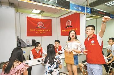 江西財(cái)經(jīng)大學(xué)的志愿者熱情服務(wù)校友。 深圳特區(qū)報(bào)記者 劉羽潔 攝