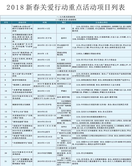 2018新春關(guān)愛行動重點(diǎn)活動項(xiàng)目列表出爐