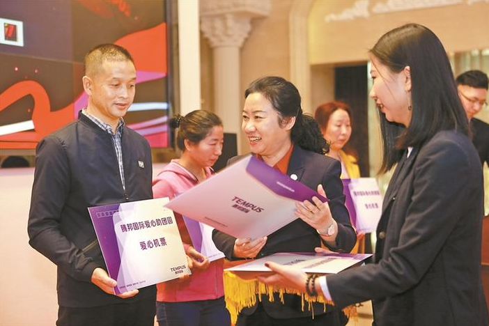 24日上午,騰邦集團大廈二樓“暖意濃濃”,作為本屆第一批受助的6個代表家庭來到了啟動儀式現場,相關單位負責人為他們送上了機票?;顒蝇F場同時成立騰邦慈善義工隊,第一批成員代表在啟動儀式上宣誓。