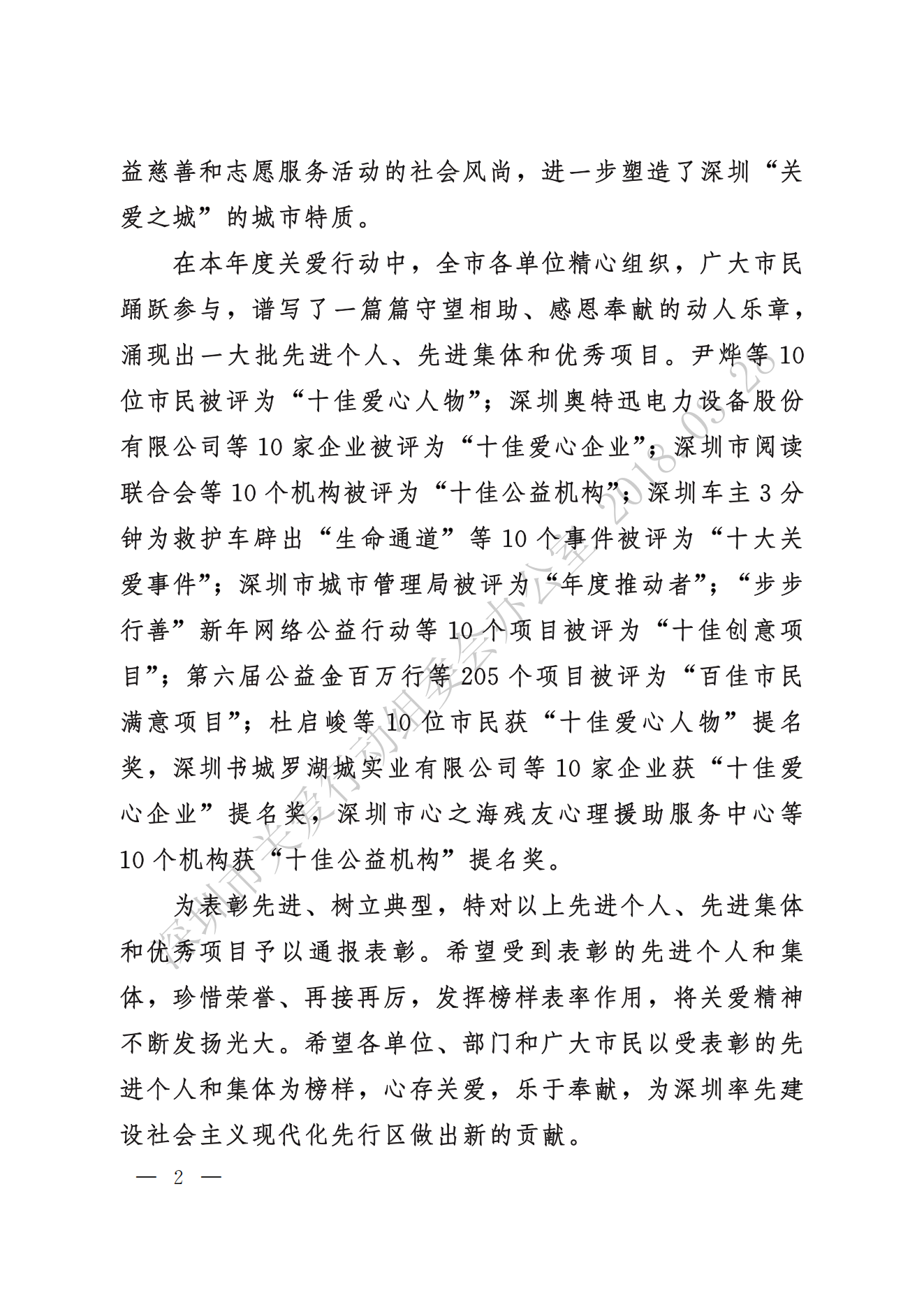 關(guān)于表彰2018深圳關(guān)愛(ài)行動(dòng)先進(jìn)個(gè)人、先進(jìn)集體和優(yōu)秀項(xiàng)目的通報(bào)