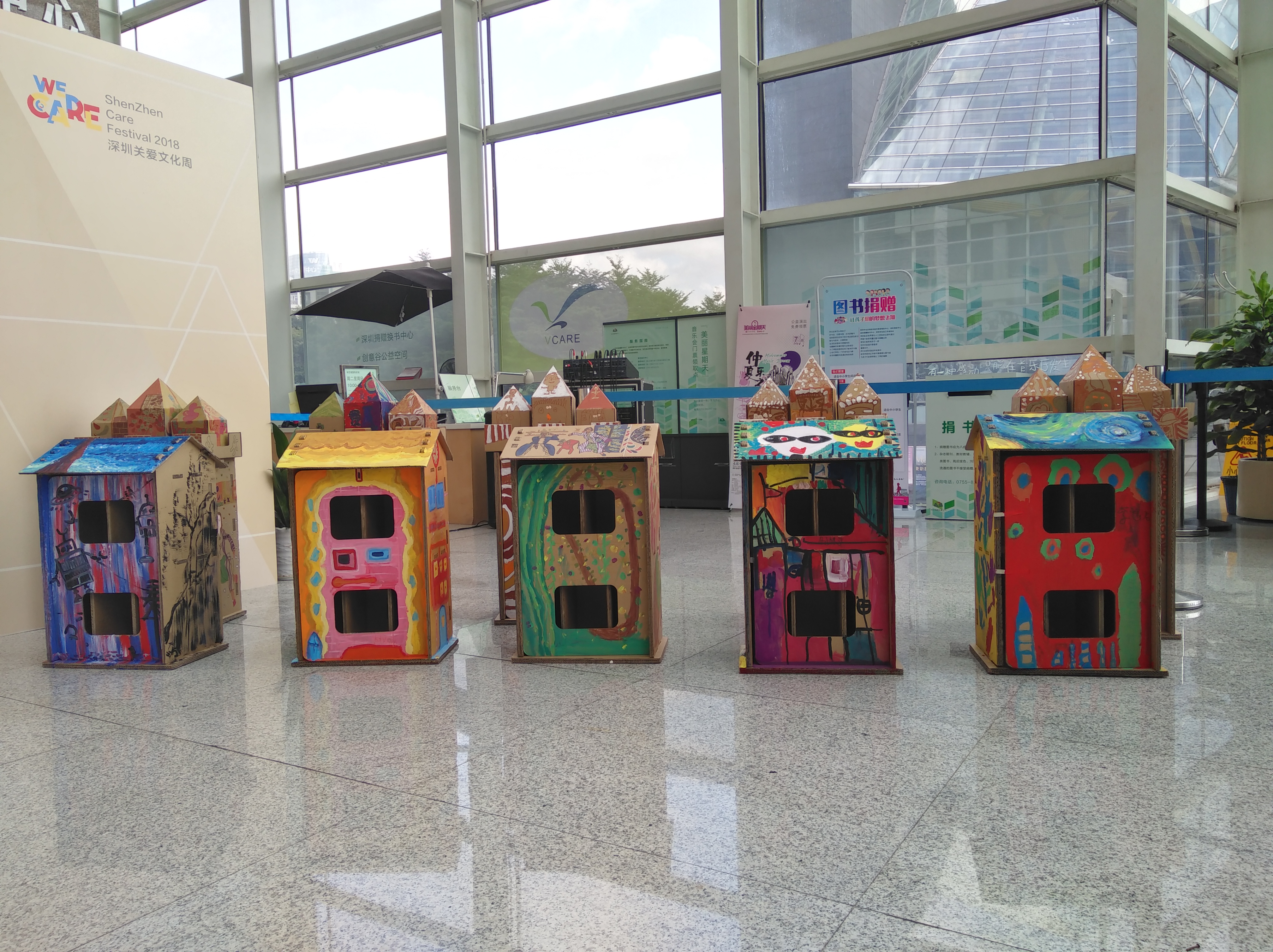 “鵬城小書屋”流動捐書計劃推出20個贛南民居等造型的紙質(zhì)小書屋。這些繽彩紛呈的創(chuàng)意小書屋是在左印國際美術(shù)教育機構(gòu)的老師和孩子們創(chuàng)作下完成的,以大師名作為特征,每一件都是精心制作的手繪藝術(shù)品。