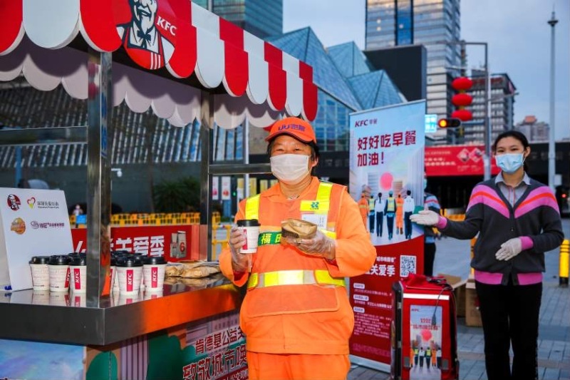 3月7日,深圳市關(guān)愛辦聯(lián)合深圳肯德基開展愛心送餐行動,將800份熱騰騰的愛心早餐送到了城市服務(wù)工作者的手中,致敬這些“城市喚醒者”。