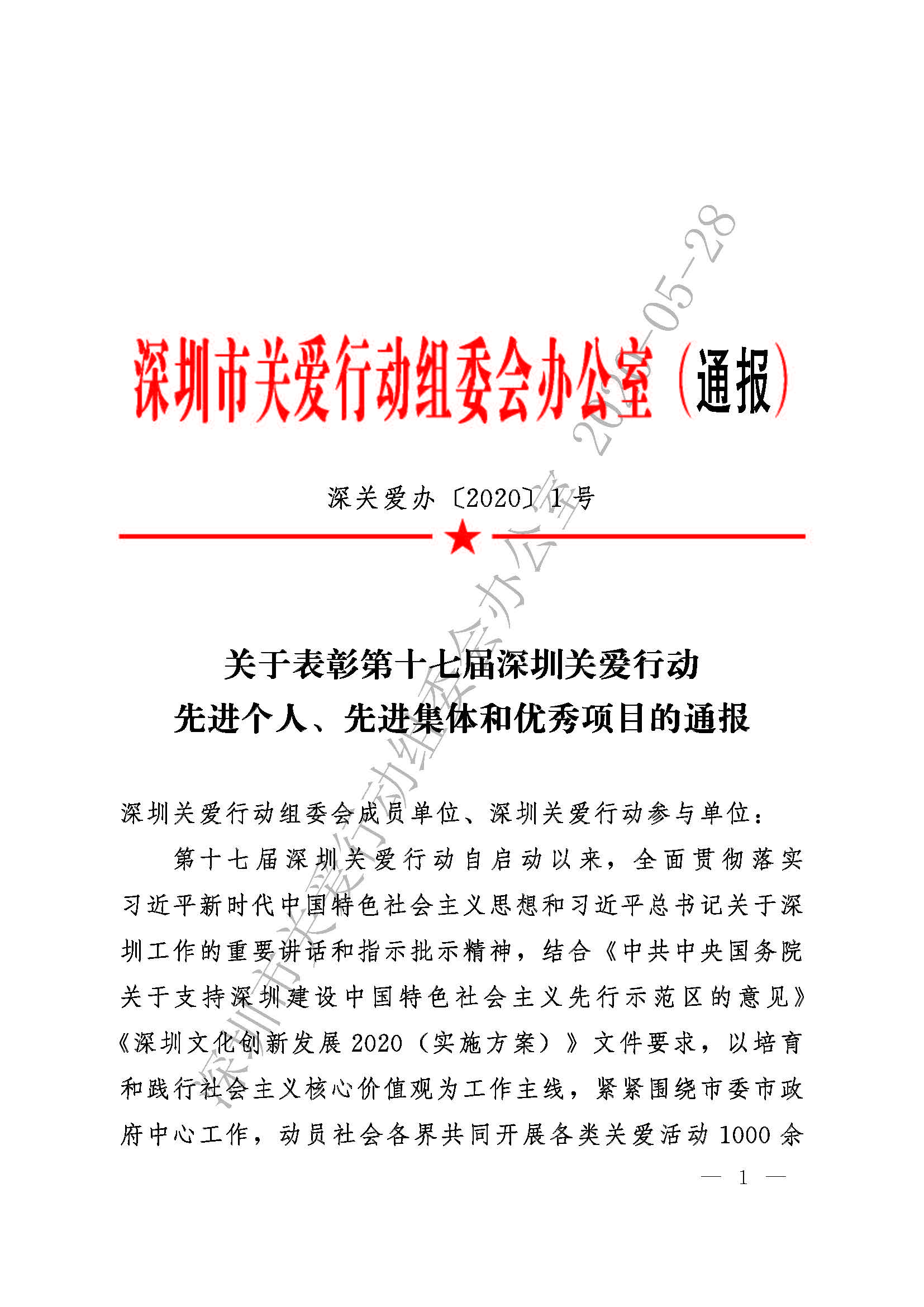 關(guān)于表彰第十七屆深圳關(guān)愛行動先進(jìn)個人、先進(jìn)集體和優(yōu)秀項(xiàng)目的通報(bào)