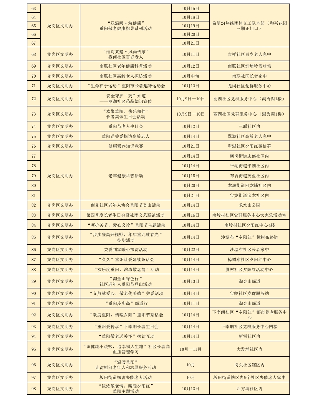 “孝滿堂·愛傳承”關(guān)愛行動(dòng)重點(diǎn)開展敬老愛老主題教育,開展“我們的節(jié)日·重陽”“名家詩詞分享會(huì)”“民俗文化走讀”等活動(dòng),充分挖掘“重陽節(jié)”傳統(tǒng)節(jié)日的文化底蘊(yùn),弘揚(yáng)孝老愛親的價(jià)值觀念。具體活動(dòng)信息如下: