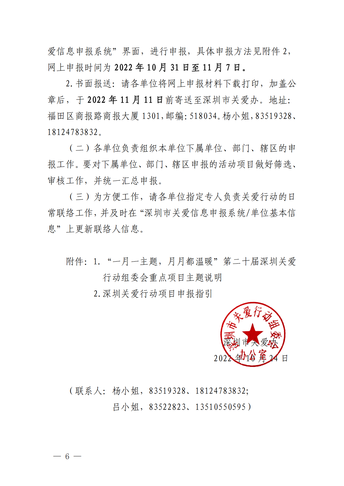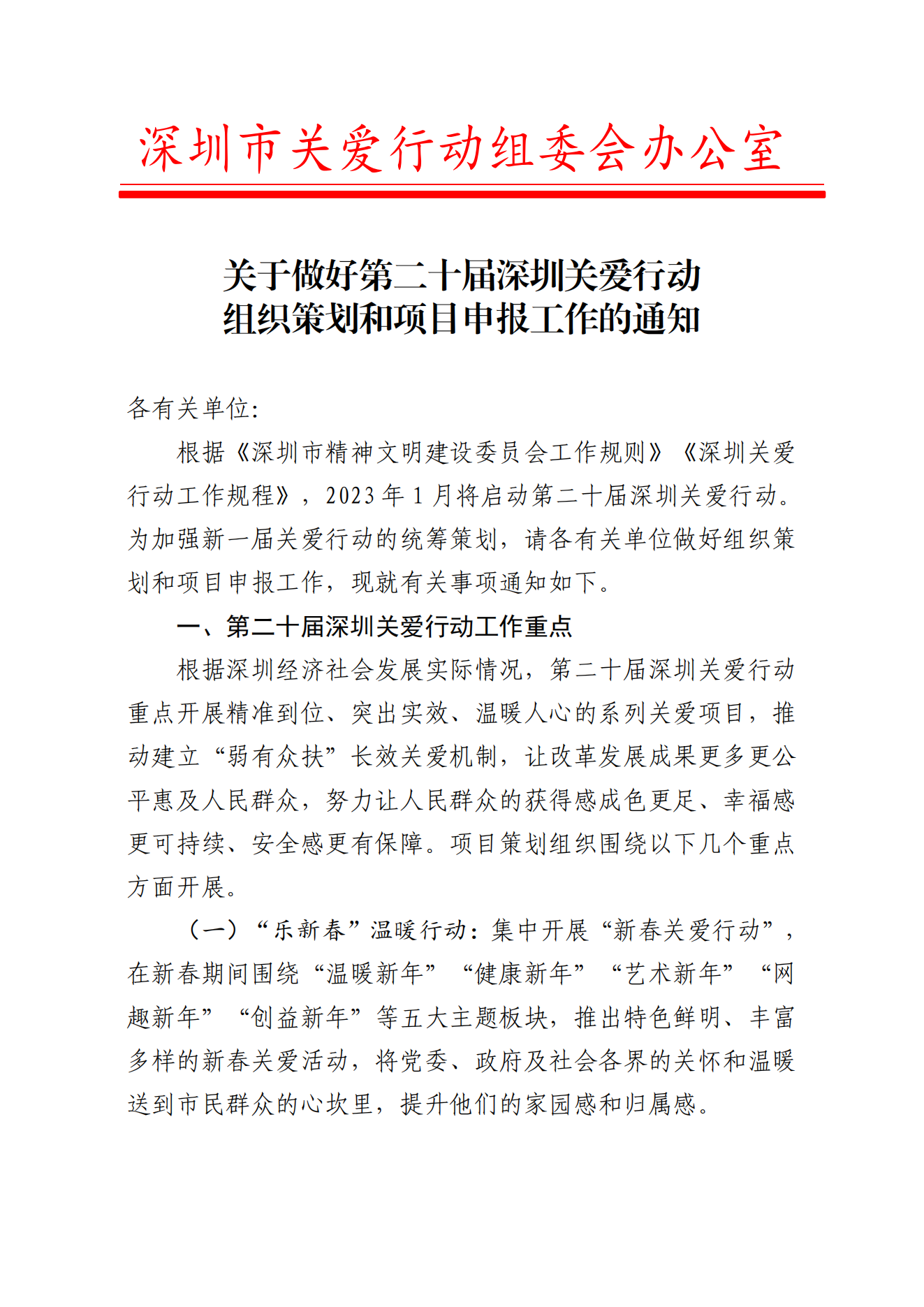 關(guān)于做好第二十屆深圳關(guān)愛行動組織策劃和項(xiàng)目申報工作的通知