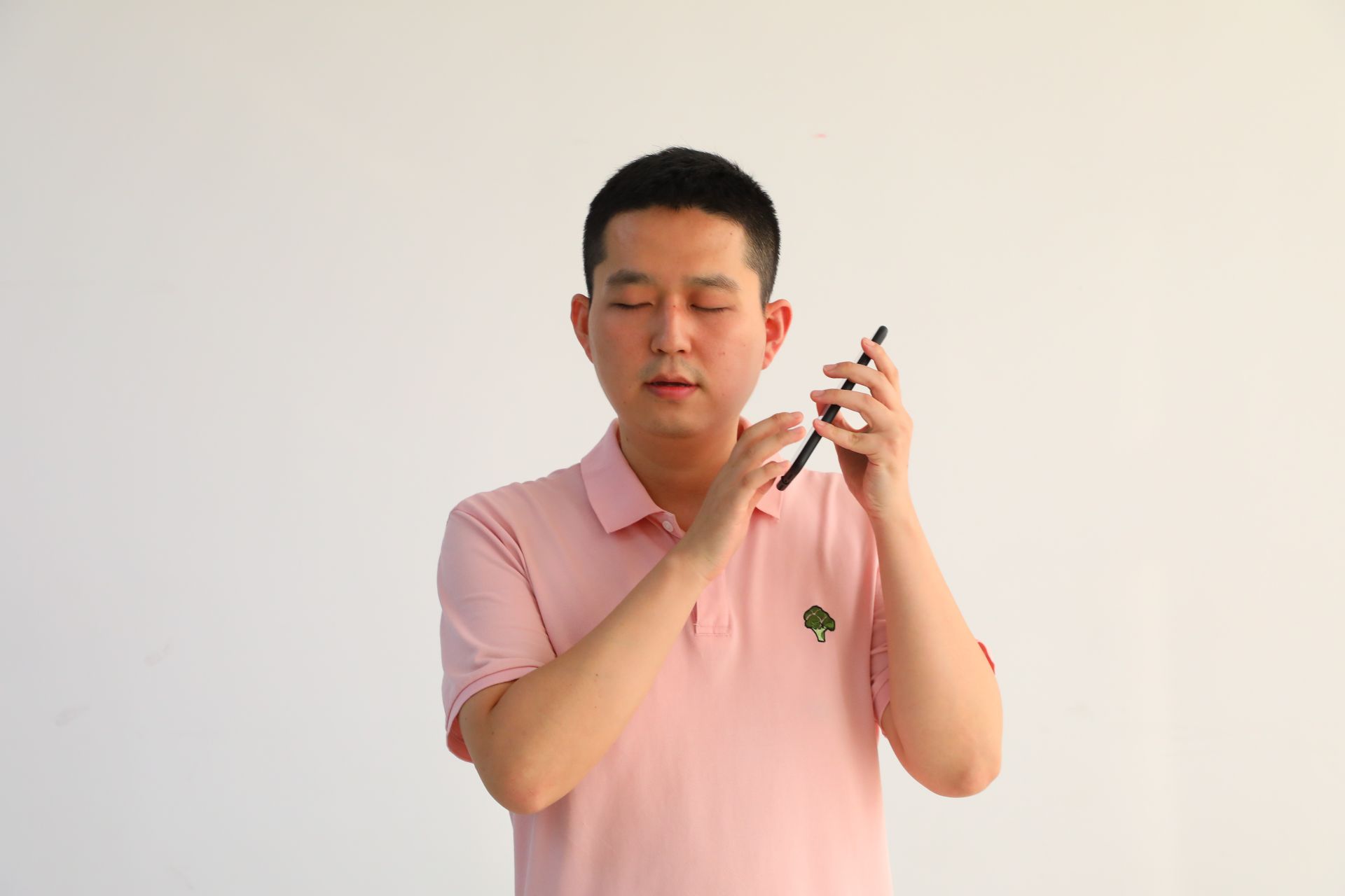 鄭銳演示如何“聽”手機(jī)。圖片由受訪者提供