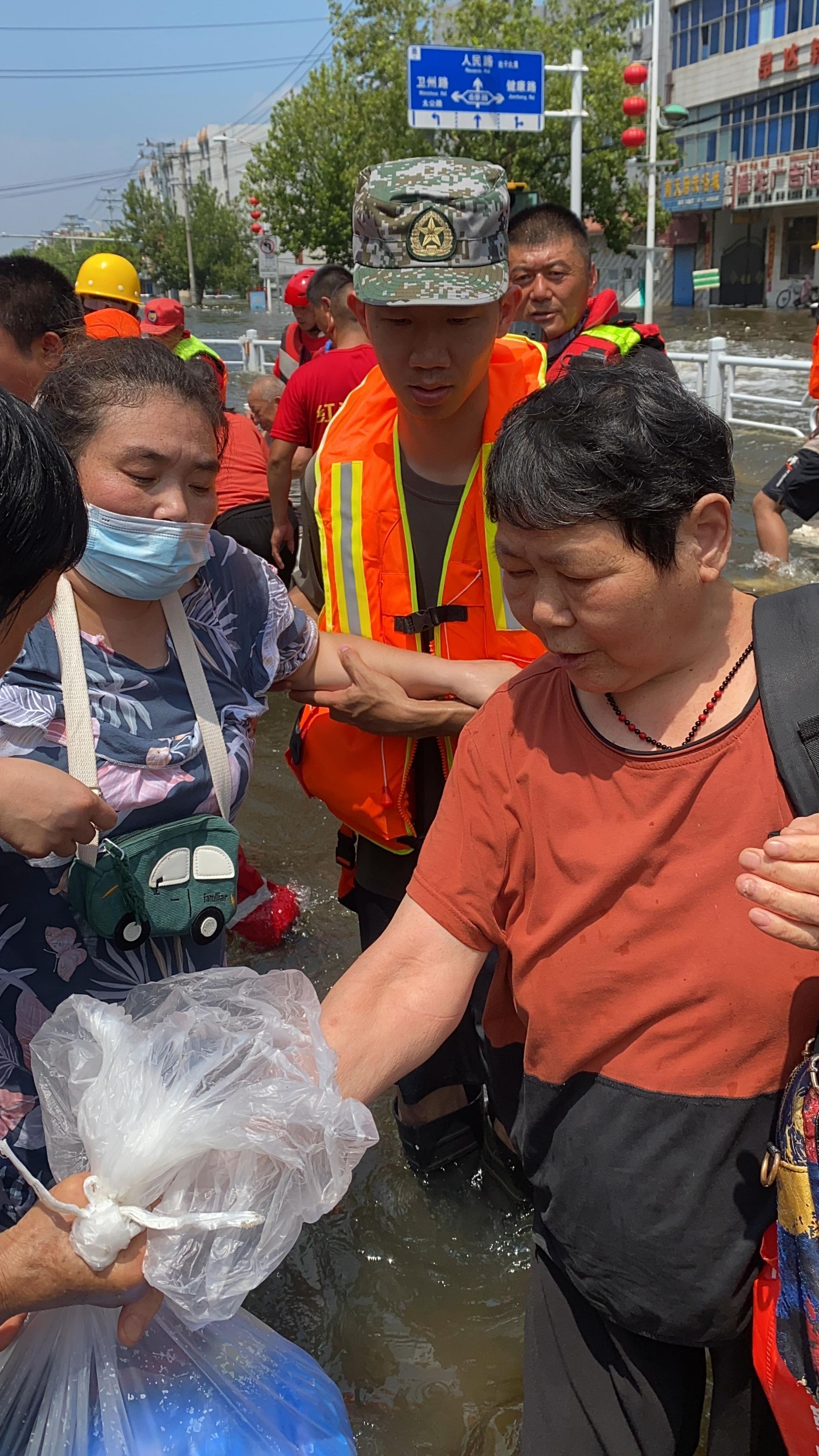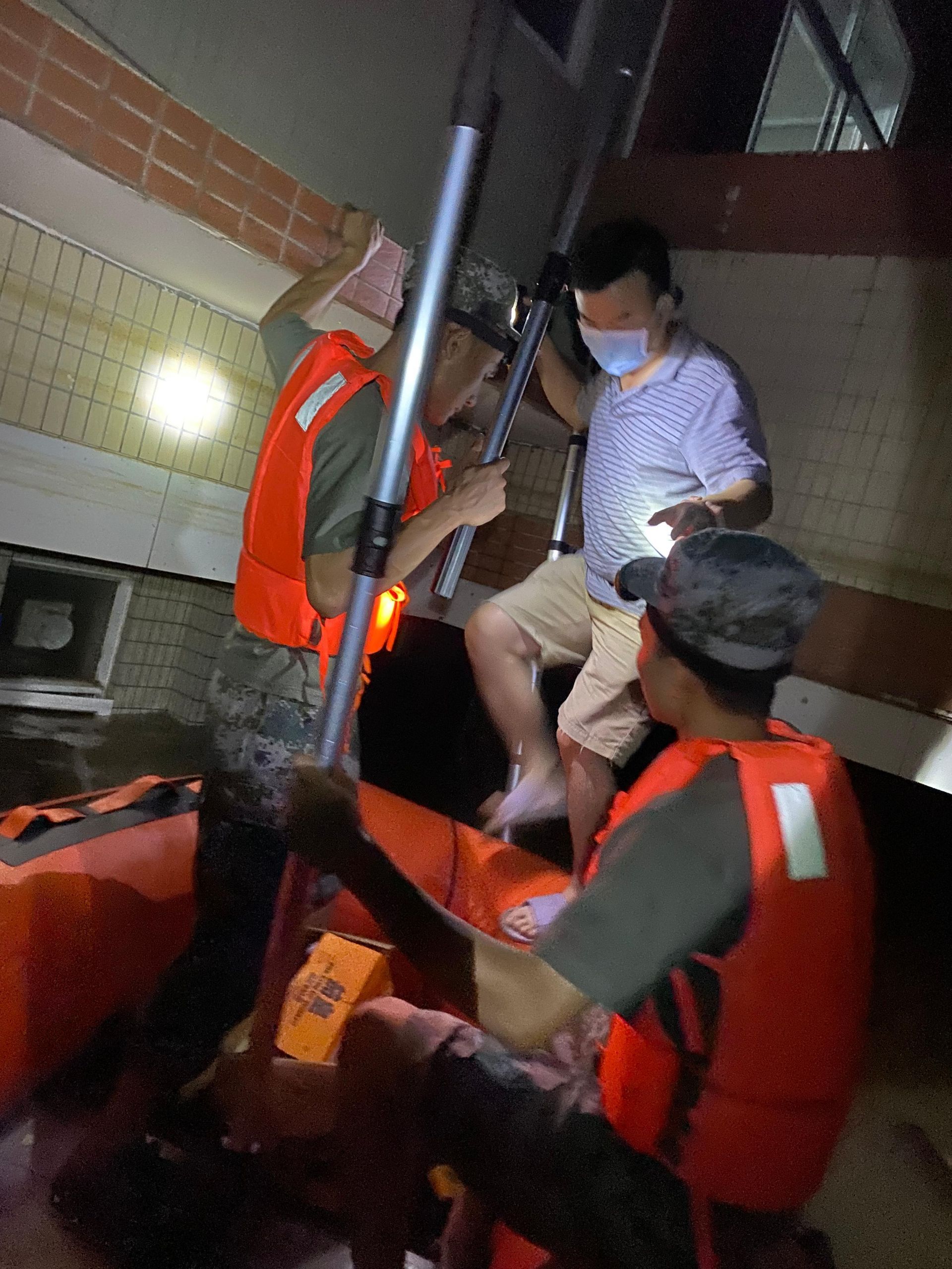 2021年7月16日,河南多地遭遇歷史罕見(jiàn)持續(xù)性強(qiáng)降雨。童穎聰看到新聞后,馬上搜集采購(gòu)了救生衣、救生圈、手套、口罩、應(yīng)急燈等便攜救援器材,裝了滿(mǎn)滿(mǎn)兩背囊,購(gòu)買(mǎi)機(jī)票前往河南?!斑@是我第一次真正參與到一線(xiàn)救援當(dāng)中去,出發(fā)時(shí)只有我一個(gè)人,但在路上偶遇了兩名退役軍人,我們一拍即合,臨時(shí)組建了一支老兵救援隊(duì)結(jié)伴同行。后來(lái),又有一名空軍中校將30名救援人員和3條沖鋒舟交由我管理,我們便輾轉(zhuǎn)鄭州、新鄉(xiāng)衛(wèi)輝、鶴壁浚縣多地全力救災(zāi)。”