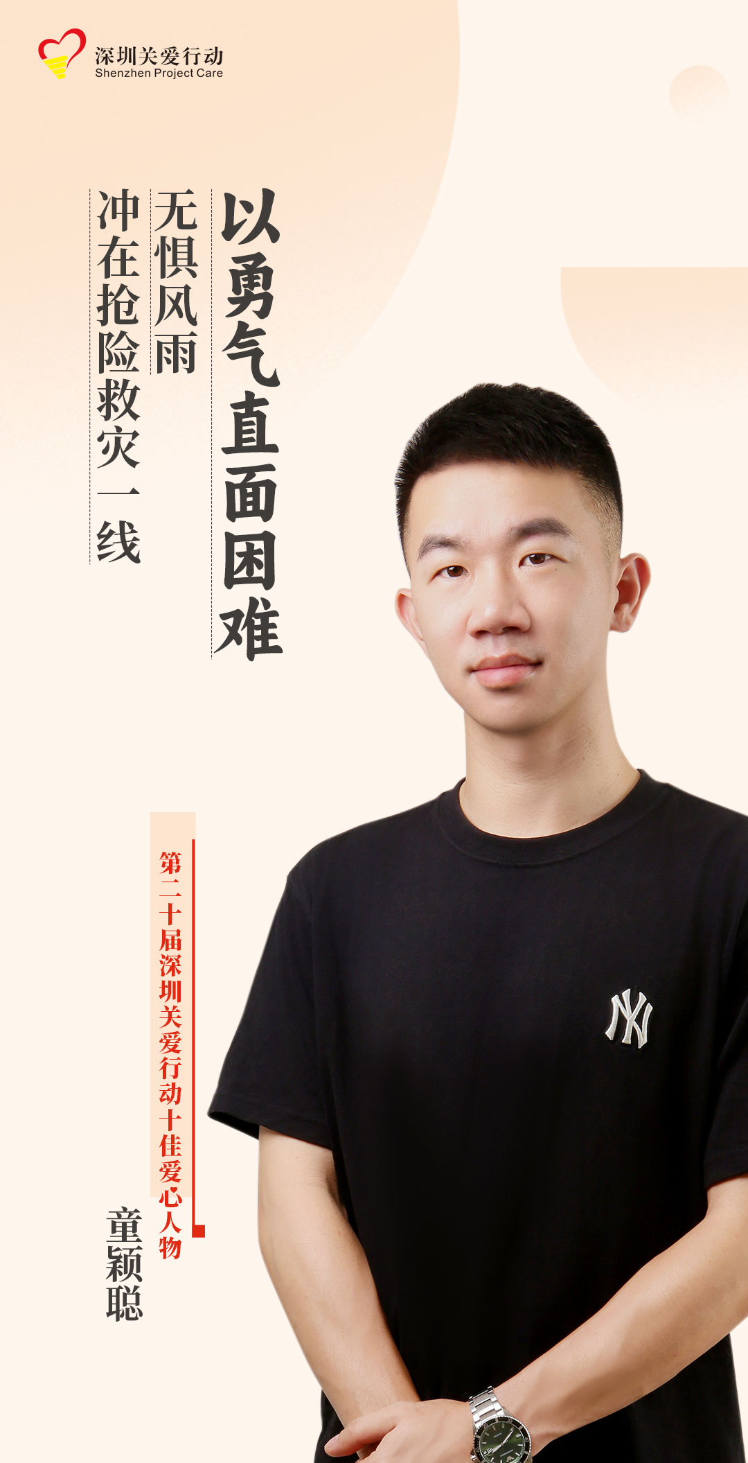 童穎聰積極主動(dòng)參與了河南、英德、河源等地的應(yīng)急搶險(xiǎn)救災(zāi)工作,多次受領(lǐng)救援當(dāng)?shù)卣兄x信和錦旗。2021年,在河南防汛搶險(xiǎn)救災(zāi)期間,他個(gè)人操舟艇轉(zhuǎn)移受困群眾280余名,帶領(lǐng)30人組成的救援隊(duì)累計(jì)轉(zhuǎn)移受困群眾超700名。2022年,在英德遭遇特大洪水期間,他帶隊(duì)累計(jì)轉(zhuǎn)移群眾300名,協(xié)助發(fā)放物資1800份。童穎聰也因此獲得了2022年度深圳市“最美應(yīng)急人”榮譽(yù)稱(chēng)號(hào)。