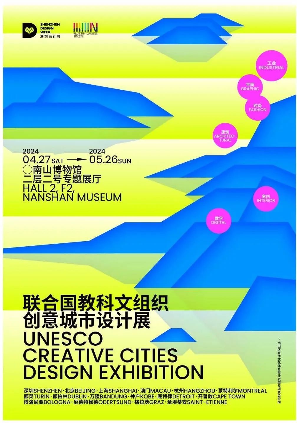 活動(dòng)簡介:本次展覽將邀請(qǐng)15至20個(gè)全球創(chuàng)意城市,精選其設(shè)計(jì)案例及往屆聯(lián)合國教科文組織新銳獎(jiǎng)獲獎(jiǎng)作品參展,展示其如何通過設(shè)計(jì)打造城市名片,解決城市治理難題,改善城市生活環(huán)境,提升市民幸福感,實(shí)現(xiàn)產(chǎn)業(yè)轉(zhuǎn)型升級(jí),賦能產(chǎn)業(yè)發(fā)展等。
