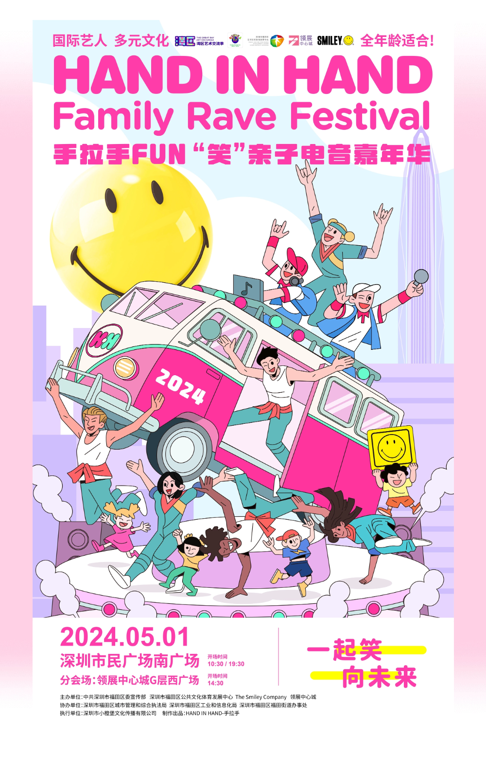 手拉手親子電音嘉年華由中共深圳市福田區(qū)委宣傳部、深圳市福田區(qū)公共文化體育發(fā)展中心、The Smiley Company及領(lǐng)展中心城主辦,深圳市福田區(qū)城市管理和綜合執(zhí)法局、深圳市福田區(qū)工業(yè)和信息化局、深圳市福田街道辦事處協(xié)辦,深圳市小橙堡文化傳播有限公司為執(zhí)行單位。屆時(shí)將作為開幕演出打響歡樂五月第一彈!
