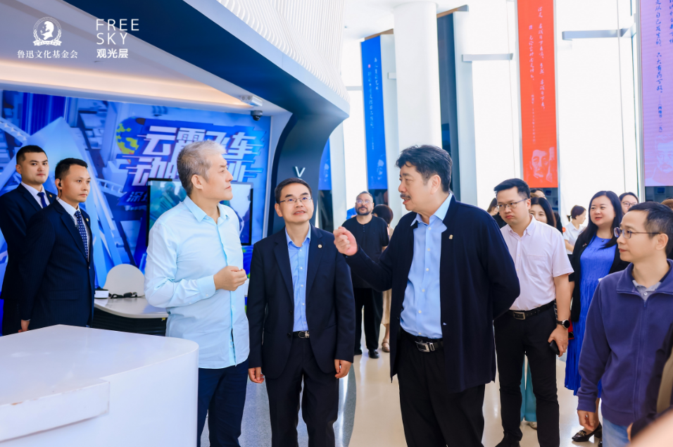 深圳文博會(huì)期間,一場(chǎng)精彩的文化盛宴在深圳平安金融中心開啟。5月20日,由深圳市關(guān)愛行動(dòng)組委會(huì)辦公室指導(dǎo),魯迅文化基金會(huì)、深圳平安金融中心主辦,深圳市關(guān)愛行動(dòng)公益基金會(huì)、平安公益基金會(huì)協(xié)辦的《魯迅與世界文豪展》開幕式暨魯迅文學(xué)云端對(duì)話活動(dòng)在深圳地標(biāo)平安金融中心116層FREE SKY云際觀光層揭幕。