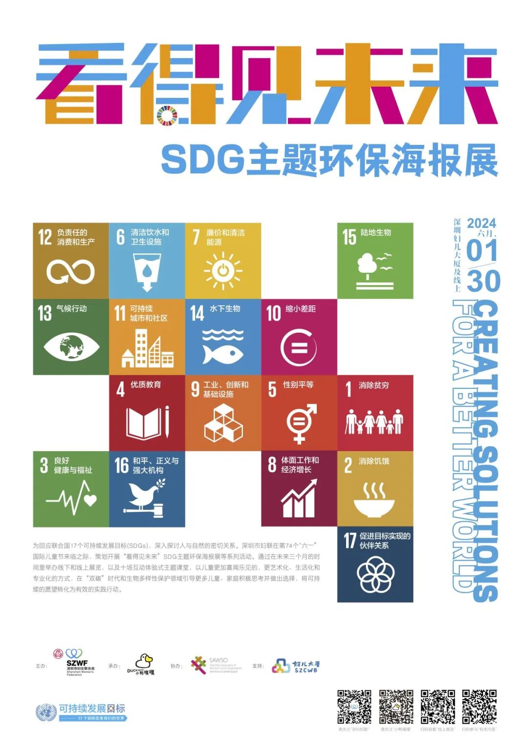 活動簡介:為回應(yīng)聯(lián)合國17個可持續(xù)發(fā)展目標(SDGs),深入探討人與自然的密切關(guān)系。深圳市婦聯(lián)在第74個“六一”國際兒童節(jié)來臨之際,策劃開展“看得見未來”SDG主題環(huán)保海報展等系列活動。未來三個月的時間里將舉辦線下和線上展覽,以及10場互動體驗式主題課堂,以兒童更加喜聞樂見的,更藝術(shù)化、生活化和專業(yè)化的方式,在“雙碳”時代和生物多樣性保護領(lǐng)域引導更多兒童、家庭積極思考并做出選擇,將可持續(xù)的愿望轉(zhuǎn)化為有效的實踐行動。